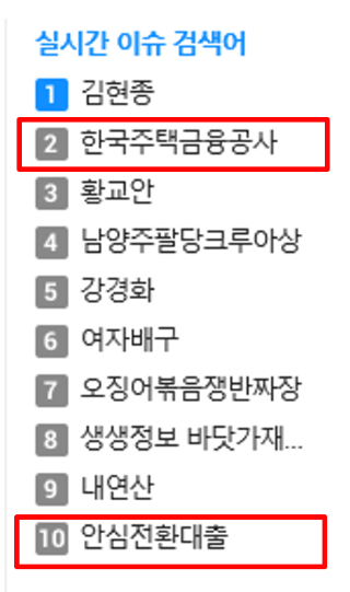 '한국주택금융공사'와 '안심전환대출'은 하루 종일